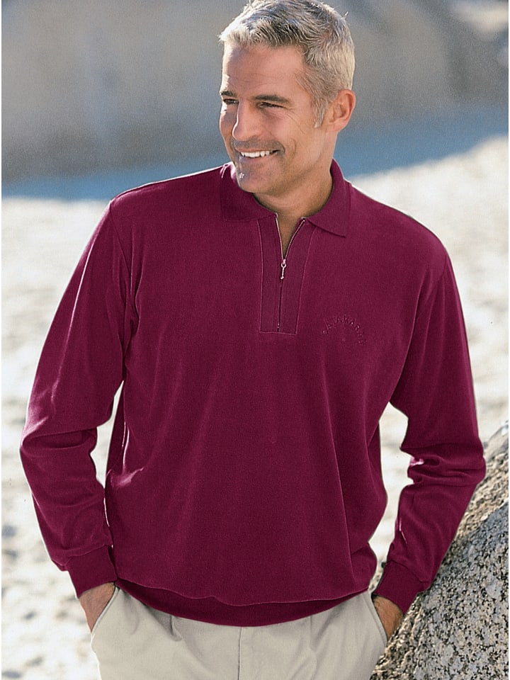 Мягкая велюровая толстовка с воротником-поло и короткой молнией. Вышивка «КАТАМАРАН». Эластичные манжеты и подол.