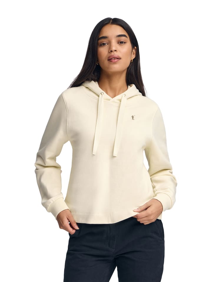 Женская толстовка с капюшоном прямого кроя. Изготовлена из хлопкового плюша. Идеальный вариант для создания непринужденного и комфортного образа, универсальная повседневная одежда.