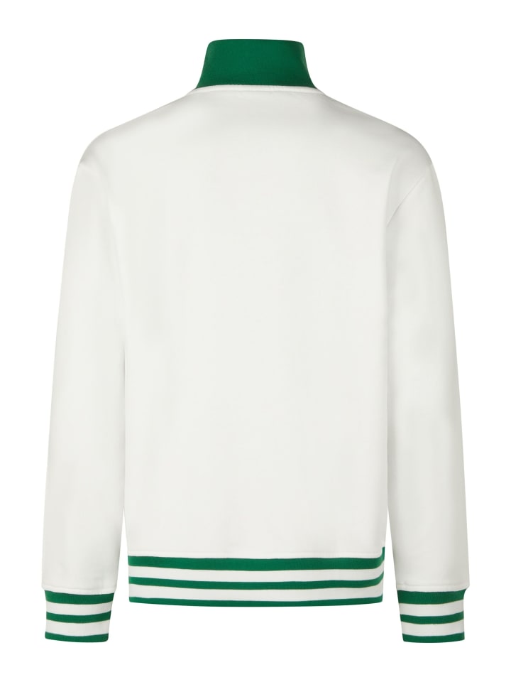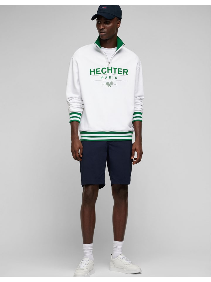 Этот свитер с логотипом от HECHTER PARIS выполнен в модном винтажном стиле. Изготовлен из 100% чистого хлопка и приятен на ощупь. Подол и манжеты украшены спортивными полосками, которые добавляют яркости. Воротник легко регулируется с помощью полумолнии.