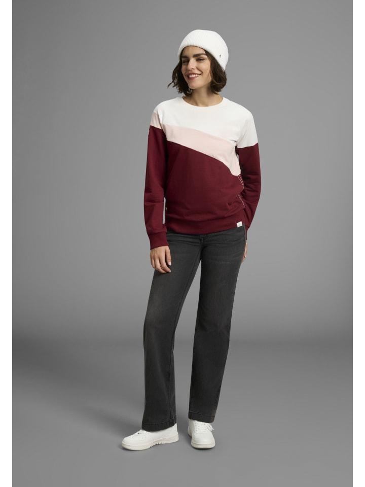 Универсальная женская толстовка от KangaROOS с эффектными цветовыми блоками. Длина до бедер, подчеркивающая фигуру, и длинные рукава реглан. Ткань с начесом обеспечивает комфорт при ношении.