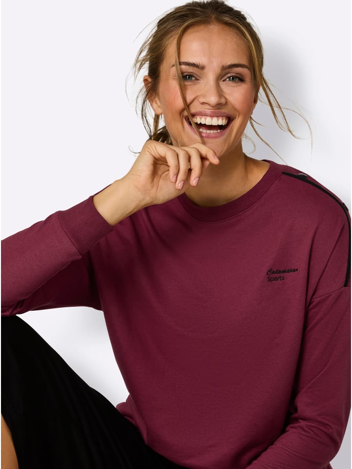 Эта удобная удлиненная толстовка от Catamaran Sports привлекает внимание крупными заклепками с контрастной окантовкой на одном из спущенных плеч. На груди вышит логотип, а на длинных рукавах и подоле - ребристые манжеты. Модель соответствует инициативе «Хлопок, сделанный в Африке».
