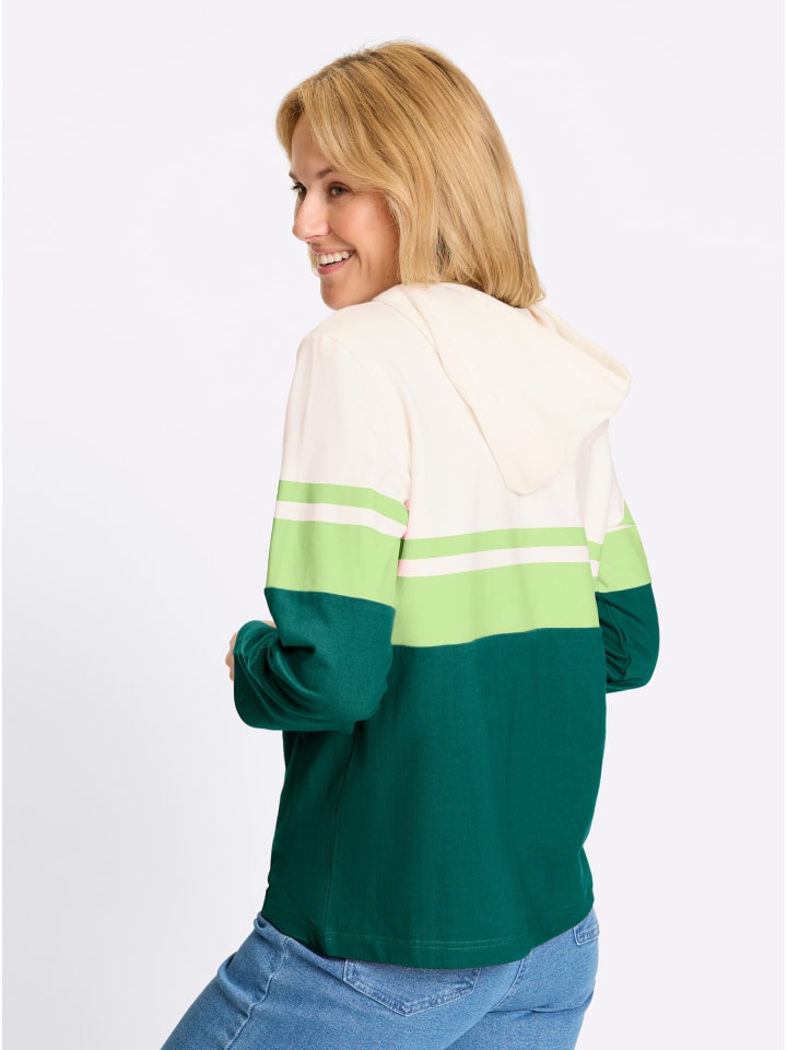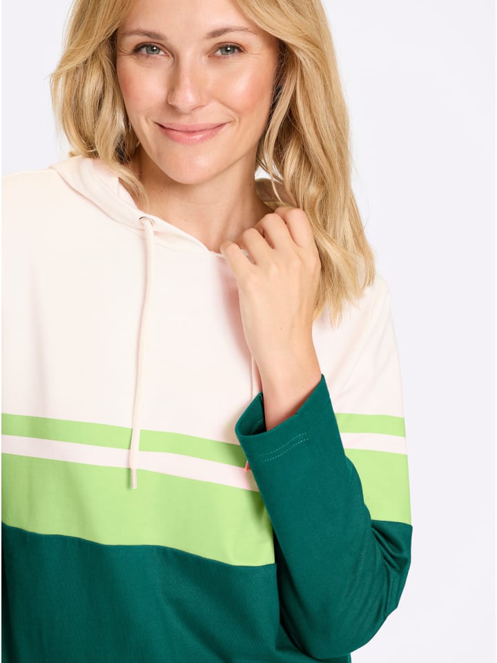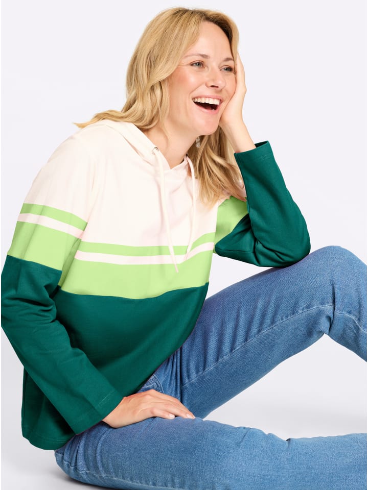Толстовка, которую не захочется снимать! В модном дизайне с цветовыми блоками. С капюшоном, шнурком и завязкой. Приятная для кожи и удобная.