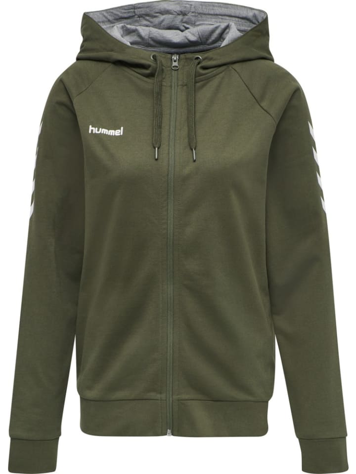 Эта модная женская толстовка с капюшоном на молнии из хлопка HMLGO имеет все необходимое - отложной воротник на шнурке, длинную молнию, спортивные детали на плечах и изящный напечатанный логотип Hummel.