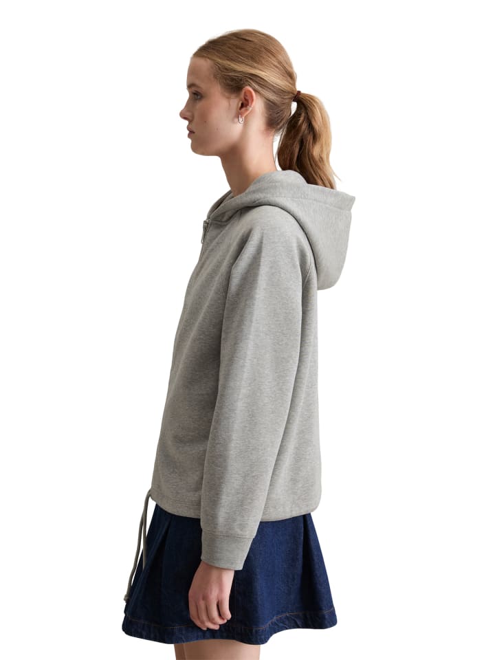 Она пропитана духом 80-х, непринужденным ретро-стилем и считается абсолютной must-have повседневной вещи: толстовка с капюшоном от Marc O'Polo DENIM. Она дополняет спортивные образы и является настоящей классикой. Свободный классический крой с большим двухслойным капюшоном, высококачественной металлической молнией спереди, длинными рукавами реглан с ребристыми манжетами и практичной кулиской по подолу. Создайте повседневный комплект: сочетайте ее с подходящими спортивными брюками. Качество: высококачественный меланжевый флис из мягкой смеси органического хлопка с начесом внутри.
