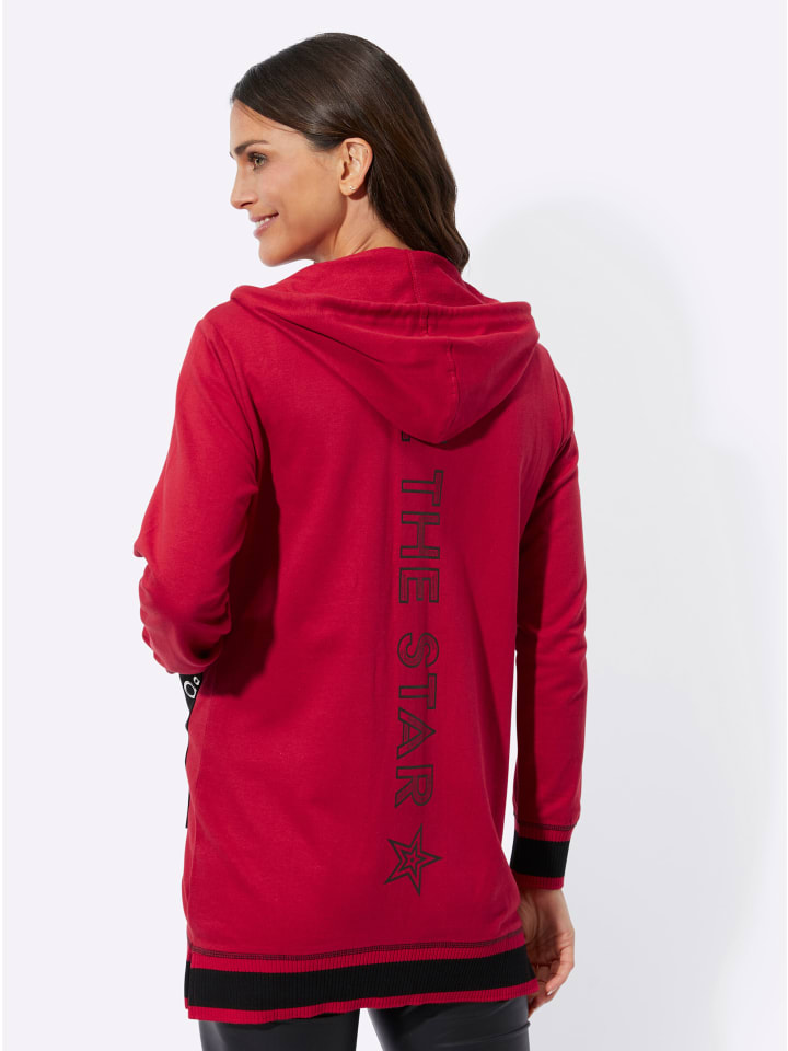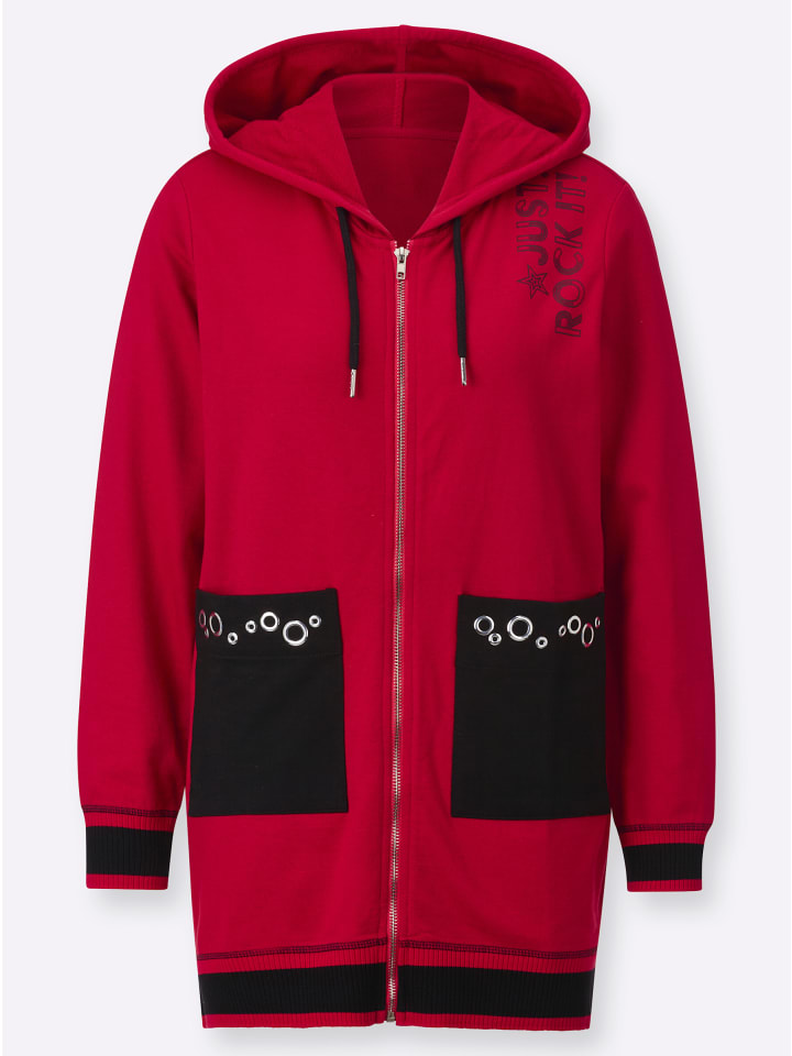 Модный спутник на каждый день и для многих случаев: эта толстовка впечатляет своей детальной отделкой и приятной легкостью ткани. Она имеет капюшон с контрастным шнурком и блестящую молнию. Декоративный принт с буквами украшает переднюю и заднюю части. Накладные карманы контрастного цвета украшены серебристыми люверсами. Длинные рукава и подол имеют трикотажные манжеты и боковые разрезы. Поддерживает инициативу «Сделано в Африке» (Cat Made in Africa).