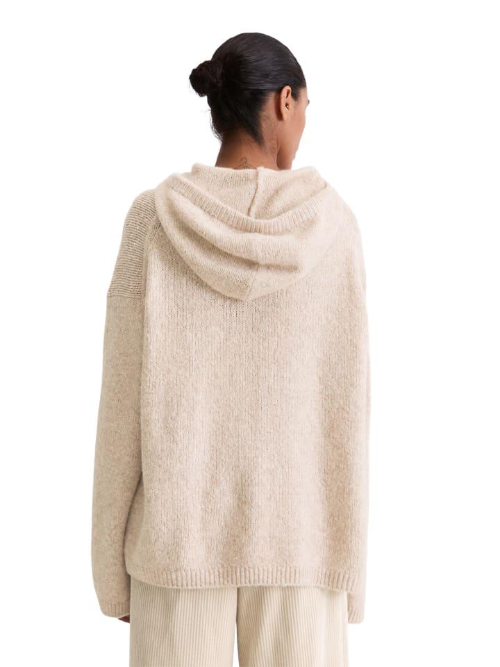 Свитера актуальны не только зимой; они также являются непринужденным, стильным и теплым спутником в межсезонье и теплыми летними вечерами. Эта модель - идеальный предмет гардероба на все времена года. Она связана из роскошной смеси высококачественной функциональной пряжи, изготовленной из органического хлопка, натуральной шерсти и шерсти альпаки, и отличается очень свободным свободным кроем. Свободная вязка включает в себя большой капюшон, спущенную линию плеча, длинные прямые рукава и ребристые манжеты.