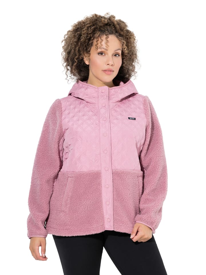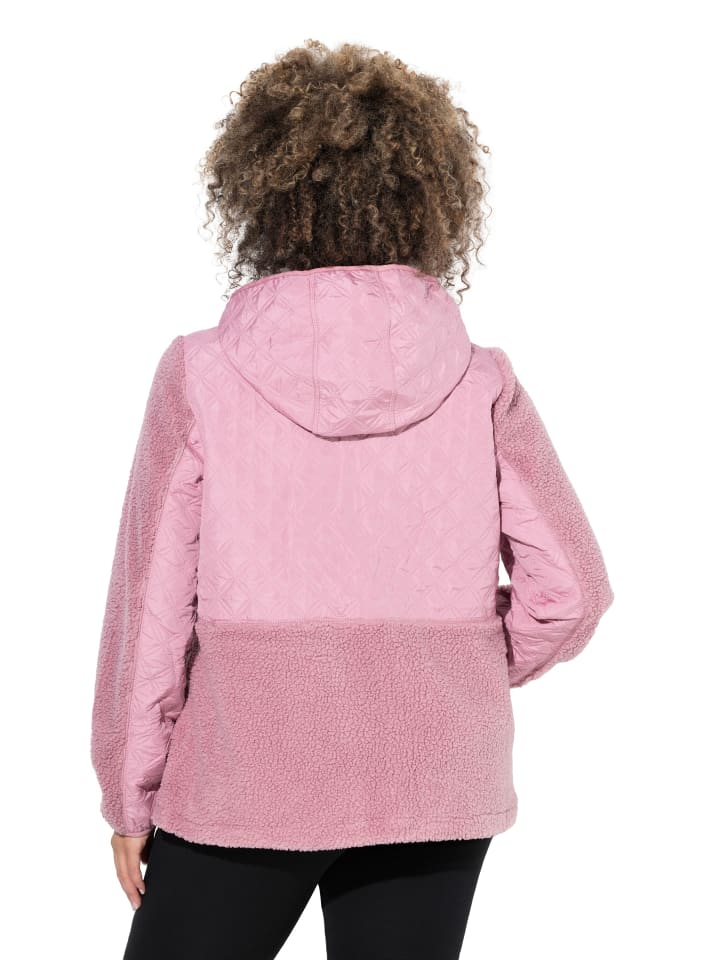 Флисовая куртка, удобная посадка, выполнена из спортивного микса материалов - флиса и стеганой ткани. Эластичная отделка. Капюшон, планка на кнопках, 2 кармана.