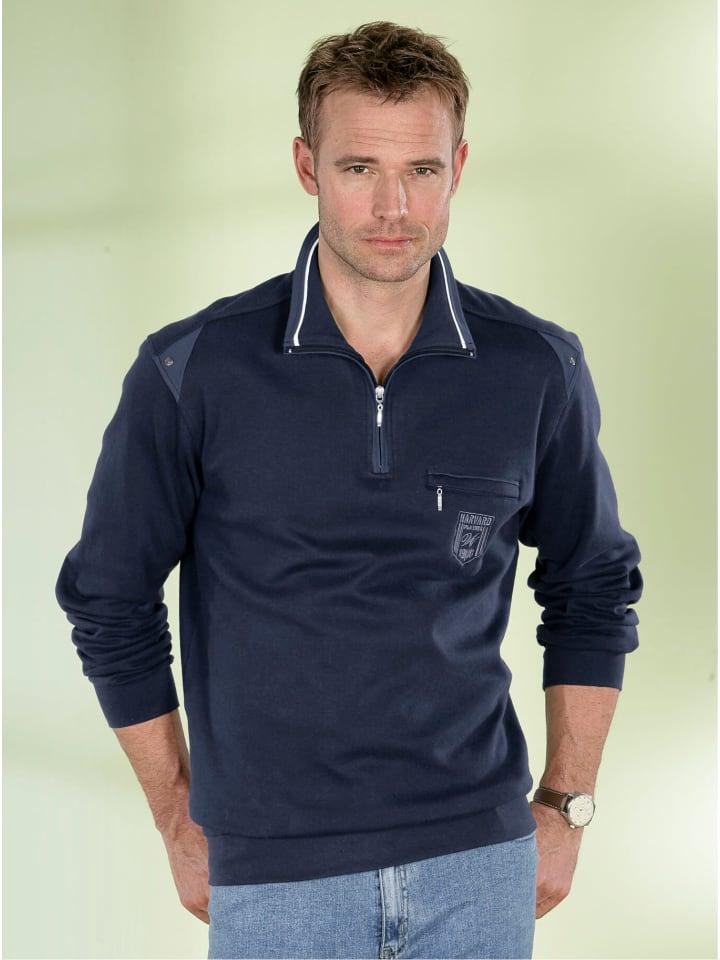 Толстовка с воротником-поло и контрастными треугольными вставками с декоративными заклепками на плечевых швах. Нагрудный карман на молнии с изящной вышивкой. Ребристые манжеты на рукавах и подоле. Высококачественный трикотаж интерлок.
