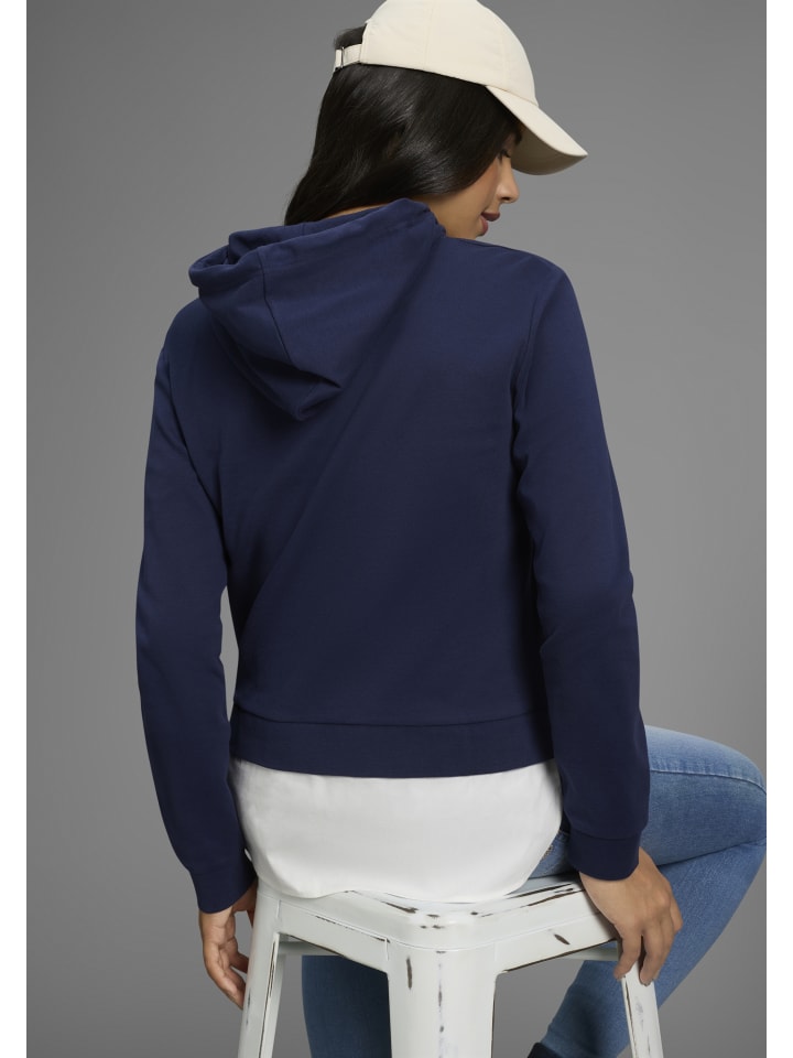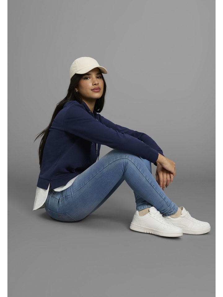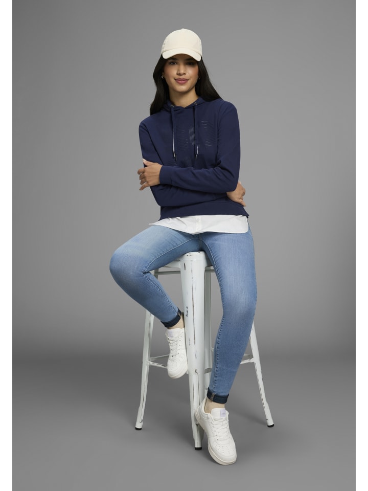 Универсальная женская толстовка с капюшоном от KangaROOS. Свободный крой до бедер и длинные рукава. Изготовлена из прочной ткани интерлок, приятной на ощупь.