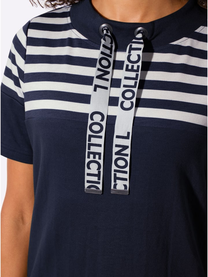 Мягкая и спортивная! Свободная толстовка с симпатичным, стратегически расположенным полосатым принтом спереди и сзади. Широкий воротник-стойка регулируется шнурком. Сертифицировано OCS.