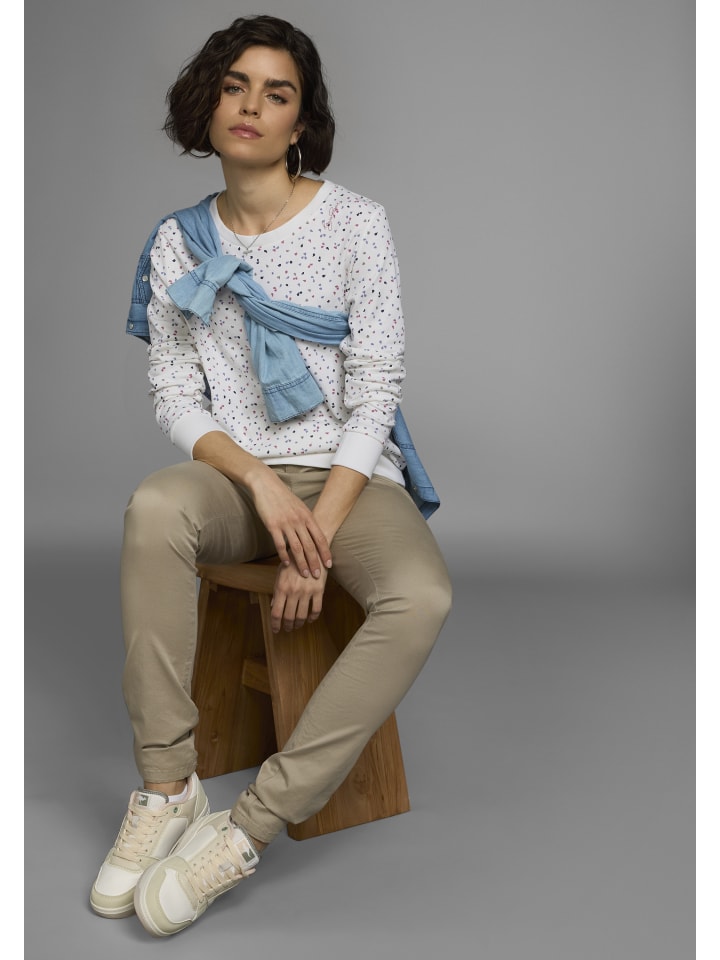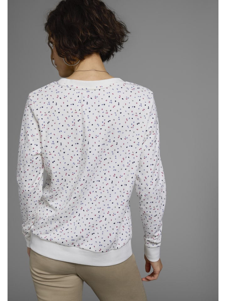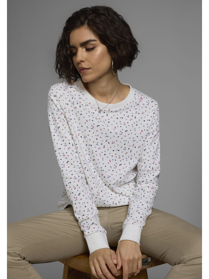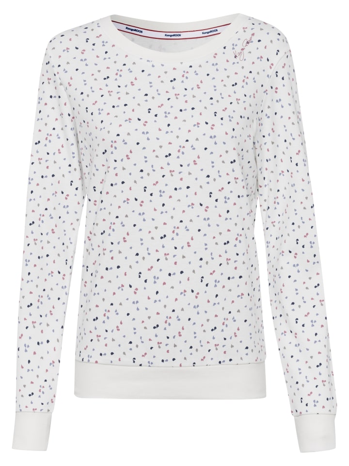 Удобная женская толстовка от KangaROOS с принтом. Длина до бедер, выгодно подчеркивающая фигуру. Вырез горловины дополнен ребристыми манжетами. Длинные рукава. Благодаря мягкой ткани интерлок этот топ обеспечивает исключительный комфорт.