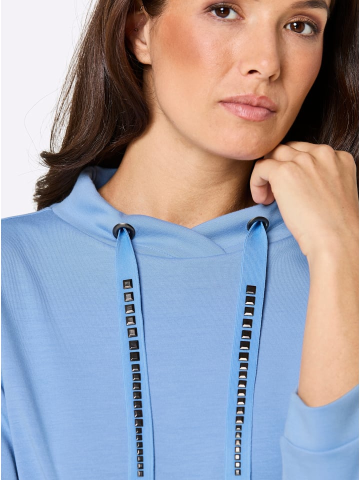 Чудесная мягкая толстовка из модала, выполненная из формоустойчивого трикотажа интерлок. Воротник-стойка с кулиской и поясом, украшенным эффектными металлическими стразами. Рукава три четверти с манжетами. Короткие боковые разрезы по низу.