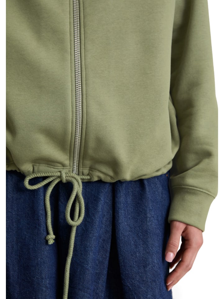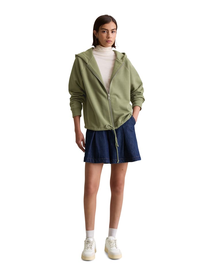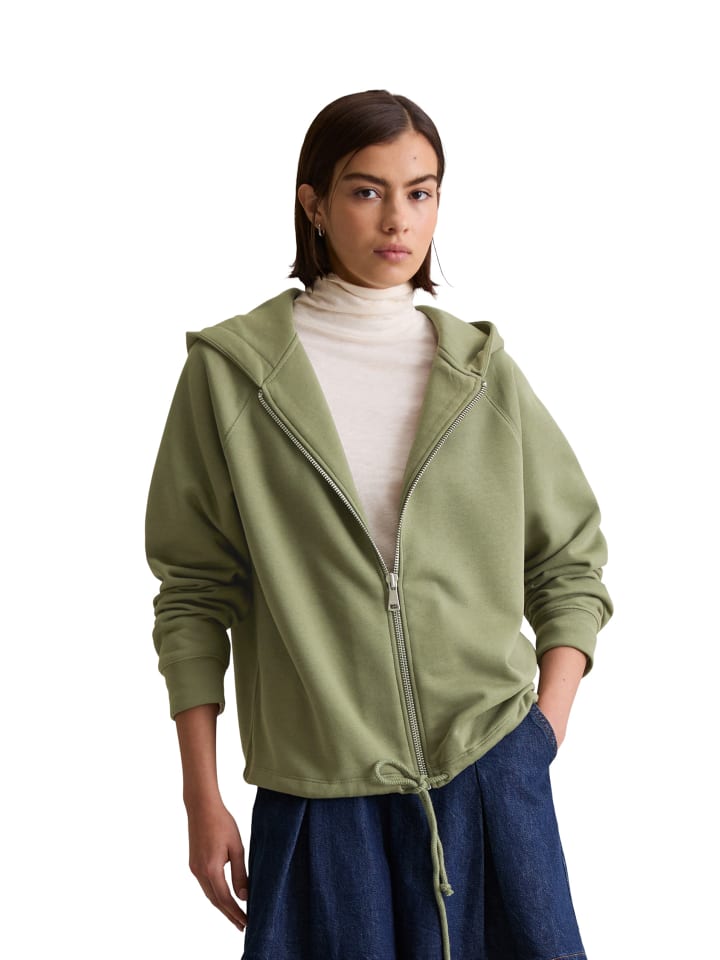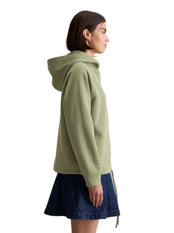 Она пропитана духом 80-х, непринужденным ретро-стилем и считается абсолютной must-have повседневной вещи: толстовка с капюшоном от Marc O'Polo DENIM. Она дополняет спортивные образы и является настоящей классикой. Свободный классический крой с большим двухслойным капюшоном, высококачественной металлической молнией спереди, длинными рукавами реглан с ребристыми манжетами и практичной кулиской по подолу. Создайте повседневный комплект: сочетайте ее с подходящими спортивными брюками. Качество: высококачественный флис из мягкой органической хлопковой смеси с начесом внутри.