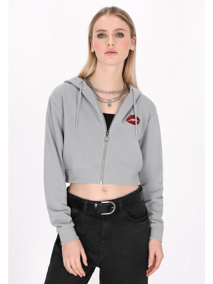 Откройте для себя эту модную укороченную толстовку свободного кроя с длинными рукавами. Модель на молнии дополнена капюшоном на шнурке и ребристым подолом, сочетающим комфорт и моду. Эта модель в рок-стиле, украшенная игривой вышивкой, идеально подходит для юных модниц, предлагая разнообразные варианты образов из коллекции Comfy.