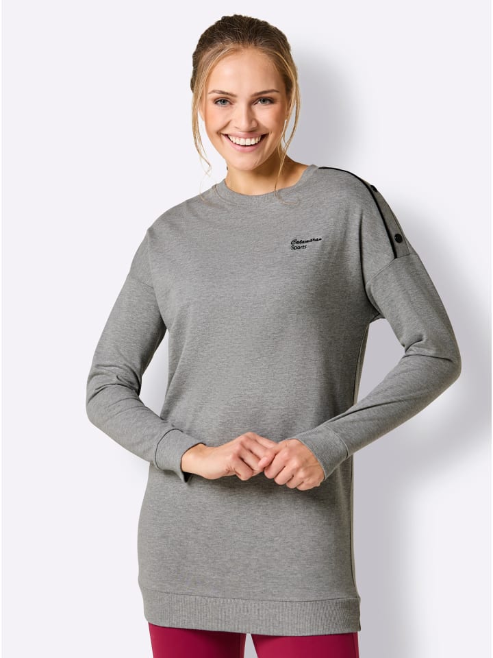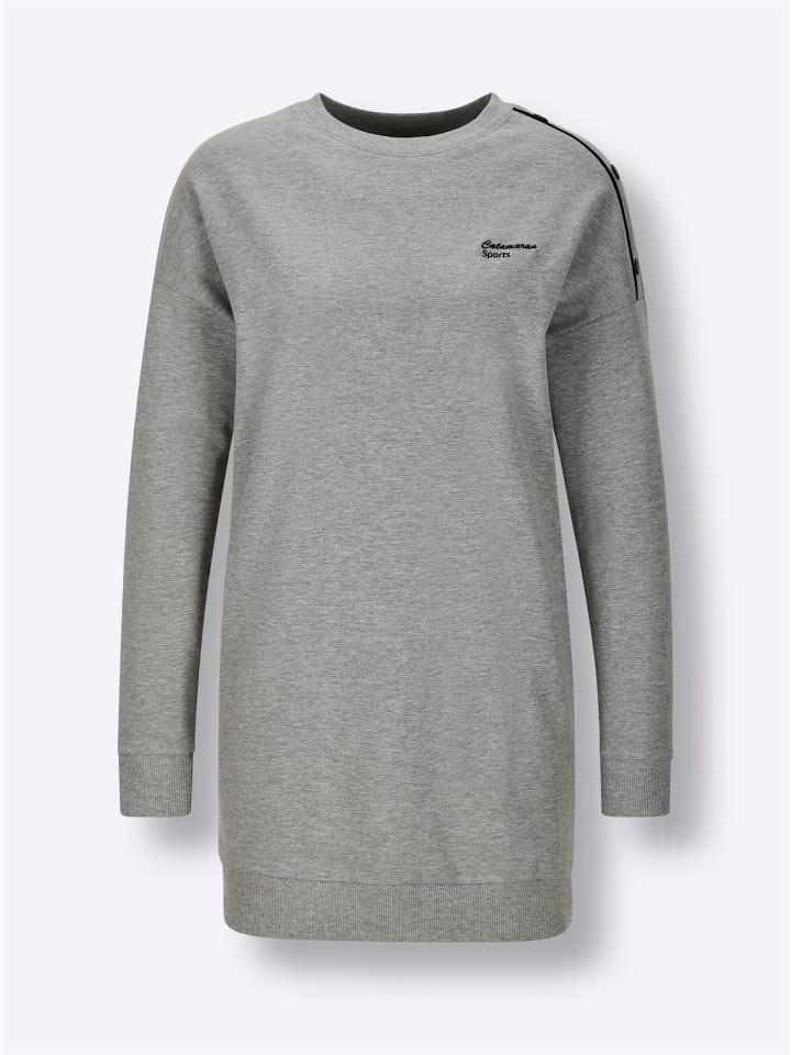 Эта удобная удлиненная толстовка от Catamaran Sports привлекает внимание крупными заклепками с контрастной окантовкой на одном из спущенных плеч. На груди вышит логотип, а на длинных рукавах и подоле - ребристые манжеты. Модель соответствует инициативе «Хлопок, сделанный в Африке».