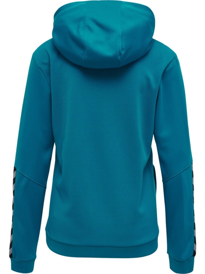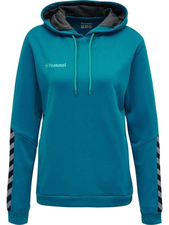 Женская толстовка с капюшоном hmlAUTHENTIC POLY из полиэстерового трикотажа отлично отводит влагу и дарит ощущение свежести. Текстурированная ткань обеспечивает прочность и сохраняет форму. Большой капюшон этой толстовки Hummel обеспечит вам комфортное тепло, когда это необходимо. Длинные рукава украшены нашими фирменными шевронами на фактурной тканой тесьме.