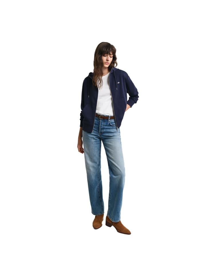 Стильная женская толстовка с капюшоном от GANT. Приятная на ощупь мягкая хлопковая смесь. Вышитый логотип с гербом. Капюшон на шнурке. Раздельный карман-кенгуру. Застежка на молнию.