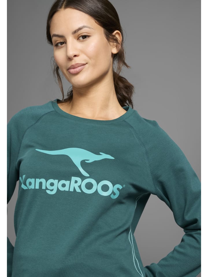 Классическая женская толстовка от KangaROOS с принтом. Удобный крой до бедер. Вырез горловины отделан рубчиком. Длинные рукава. Трикотаж интерлок делает этот топ удобным и прочным.