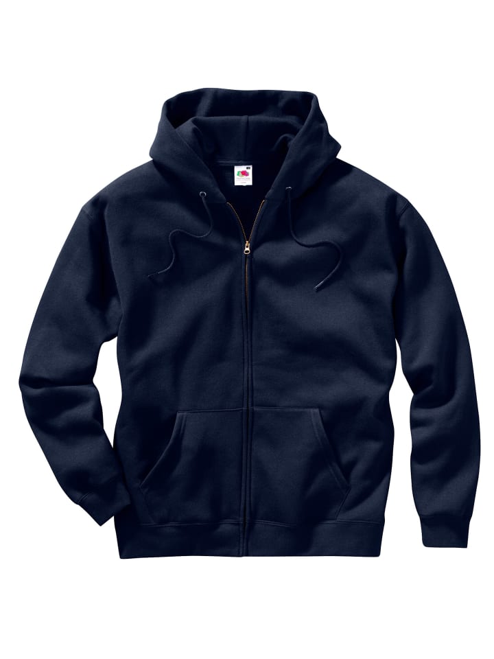 Высококачественный бренд Fruit of the Loom: спортивная толстовка с капюшоном для мужчин и женщин. Классическая застежка-молния и два боковых кармана. Эластичные манжеты.