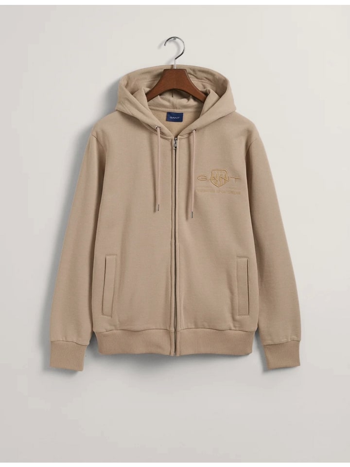Толстовка с капюшоном на молнии REG TONAL SHIELD, теплый хаки Gant