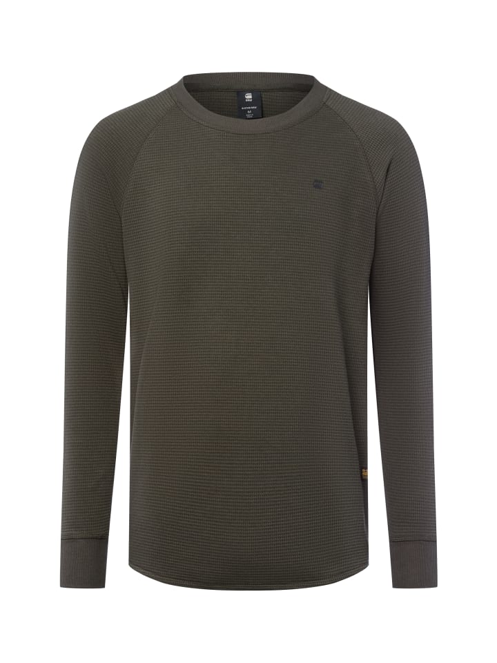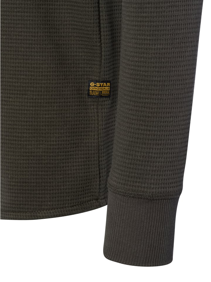 Вафельная текстура придает свитеру Jirgi от G-Star RAW стильный 3D-образный вид, который эффектно дополняют подобранные по цвету оверлочные швы.