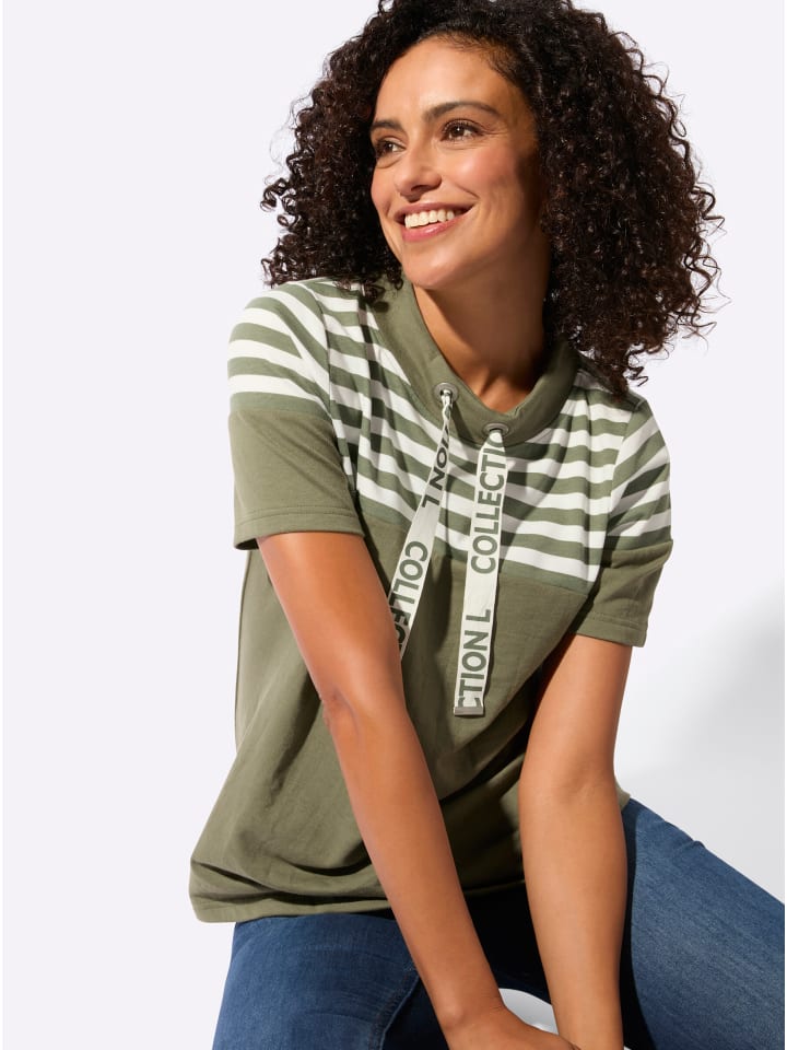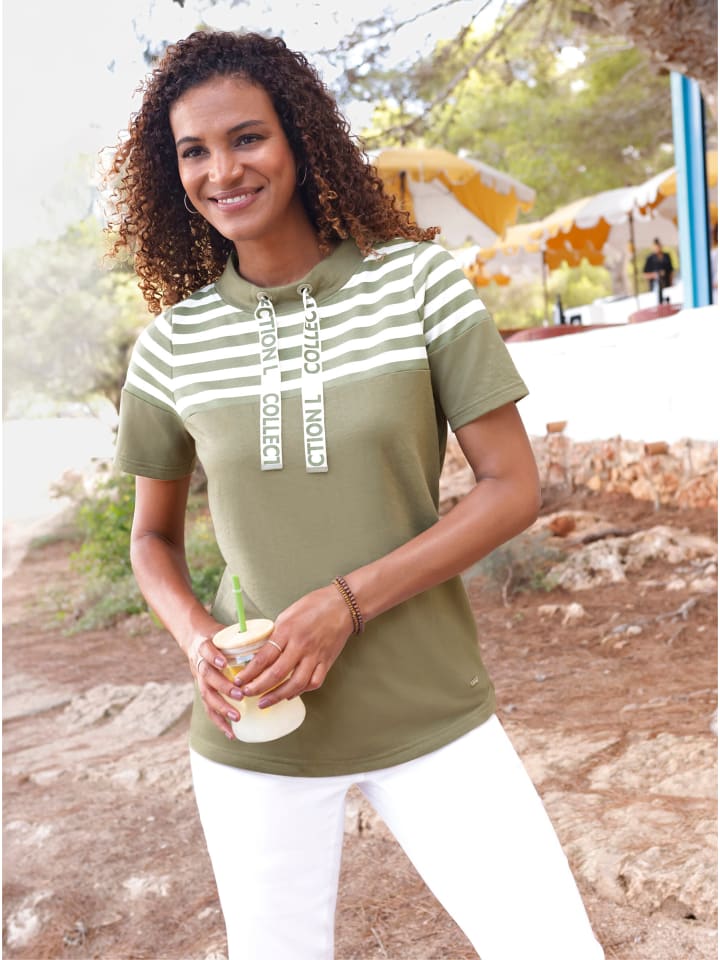 Мягкая и спортивная! Свободная толстовка с симпатичным, стратегически расположенным полосатым принтом спереди и сзади. Широкий воротник-стойка регулируется шнурком. Сертифицировано OCS.