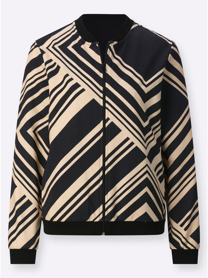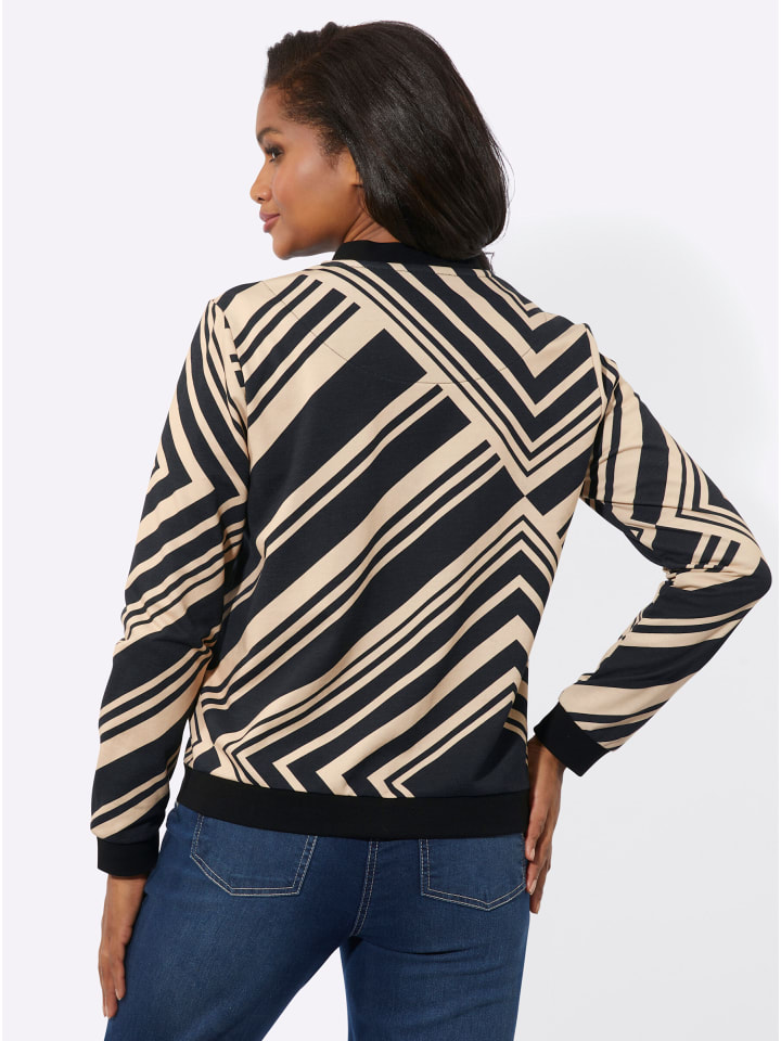 Эта толстовка сочетает в себе модный блузонный стиль с контрастным графическим рисунком. Ребристые манжеты на круглом вырезе, длинные рукава и подол, а также молния спереди выполнены в однотонном цвете. Она имеет два кармана и изготовлена из легкой ткани с начесом. Соответствует инициативе «Сделано в Африке» (Cat. Made in Africa).