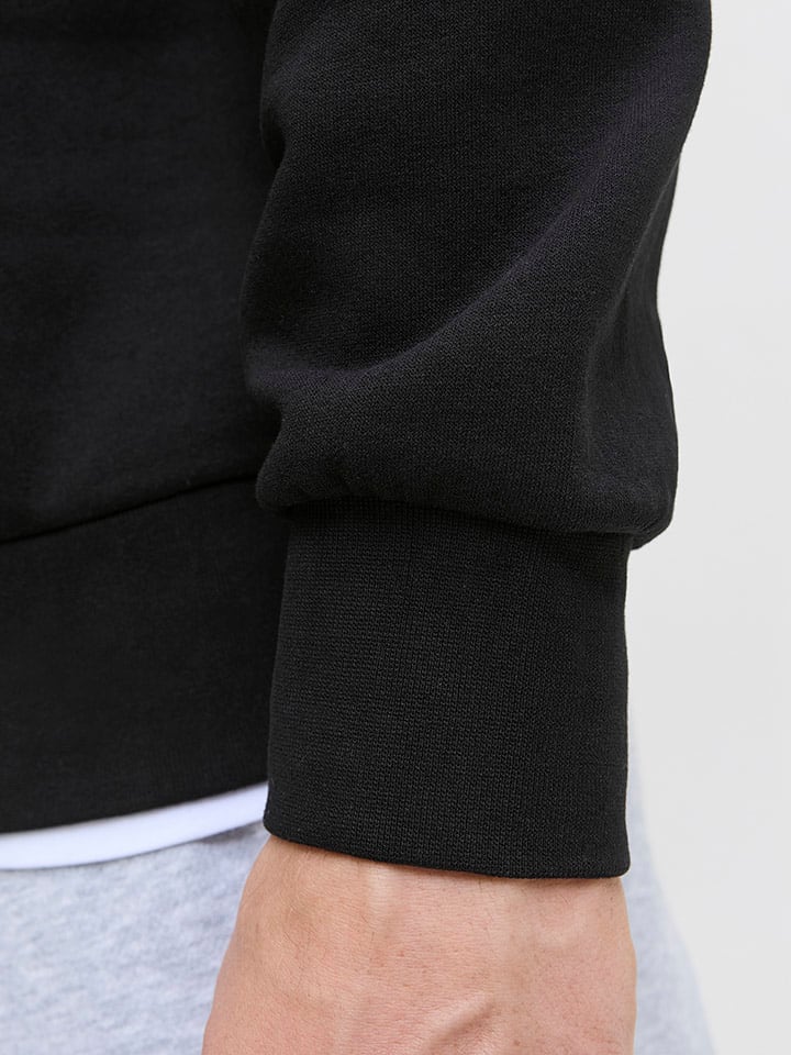 - Ребристая вязка: Вырез горловины, манжеты, подол
