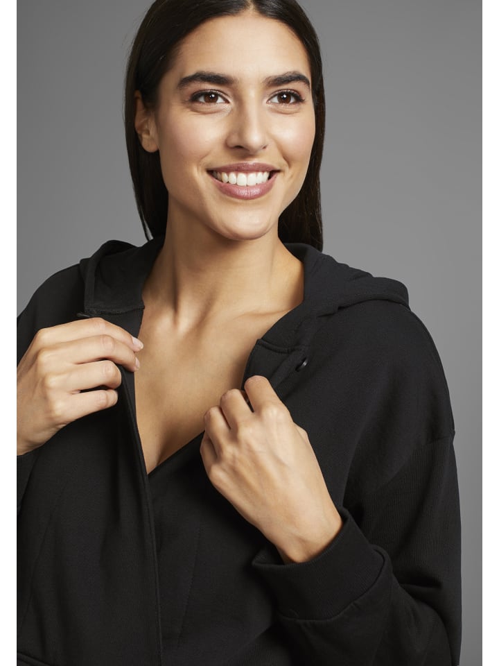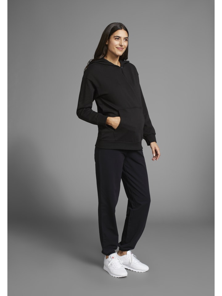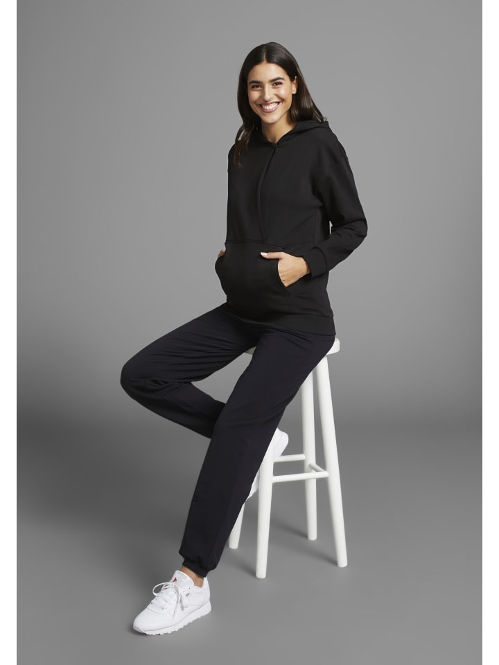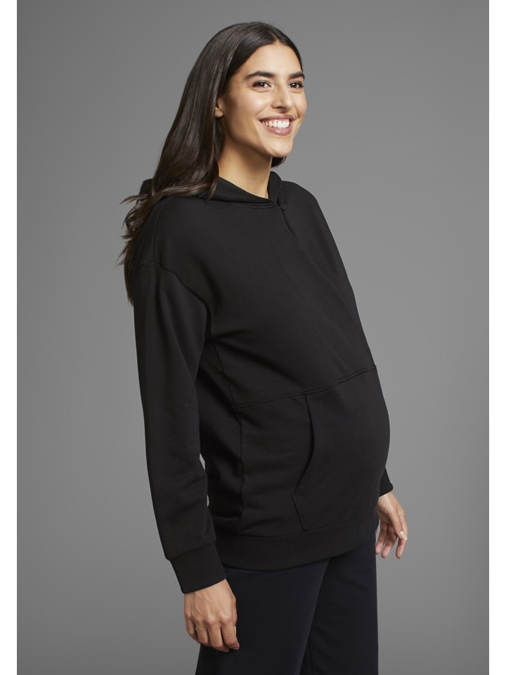 Универсальная толстовка для беременных от девяти месяцев. Свободный крой. Длинные рукава. Толстовка также имеет практичный капюшон. Верх из мягкой и эластичной ткани обеспечивает полную свободу движений.