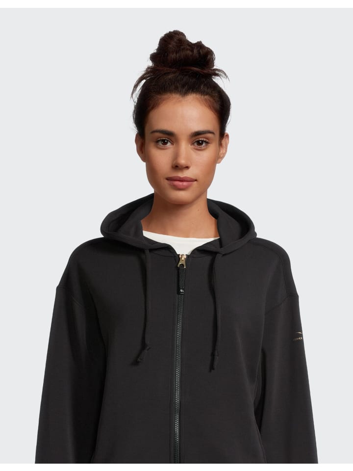 Женская толстовка с капюшоном CAYLEE. Ищете удобную куртку, которая будет надежным спутником вас как во время интенсивных тренировок, так и в повседневной жизни, и идеально впишется в ваш активный образ жизни? Толстовка с капюшоном CAYLEE от VENICE BEACH предлагает вам именно это: функциональность, комфорт и стиль в одном. Мягкий, уютный материал этой женской толстовки приятен на ощупь и обеспечивает постоянное ощущение комфорта - занимаетесь ли вы спортом или наслаждаетесь отдыхом. Благодаря оптимальной посадке куртка поддерживает каждое ваше движение и дает свободу для энергичной, динамичной тренировки. Благодаря супермягкому модальному материалу и боковым карманам женская толстовка CAYLEE станет идеальным спутником для вашей повседневной жизни. С этой женской спортивной толстовкой от VENICE BEACH вы не только идеально оснащены для функциональности, но и демонстрируете свой стиль. Современный облик вдохновлен духом легендарного пляжа Лос-Анджелеса - для уверенного образа, где бы вы ни находились. - Капюшон на шнурке ``` - Супермягкий модал ``` - Боковые карманы ``` - Молния `` - Логотип на рукаве ``````Состав: - 50% полиэстер `- 45% модал `- 5% эластан