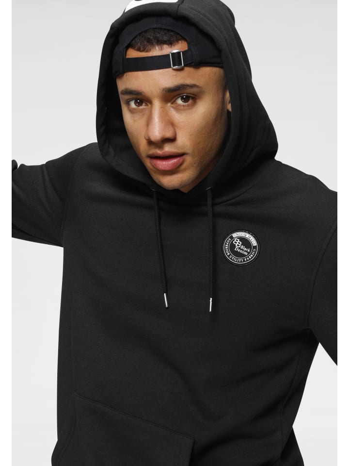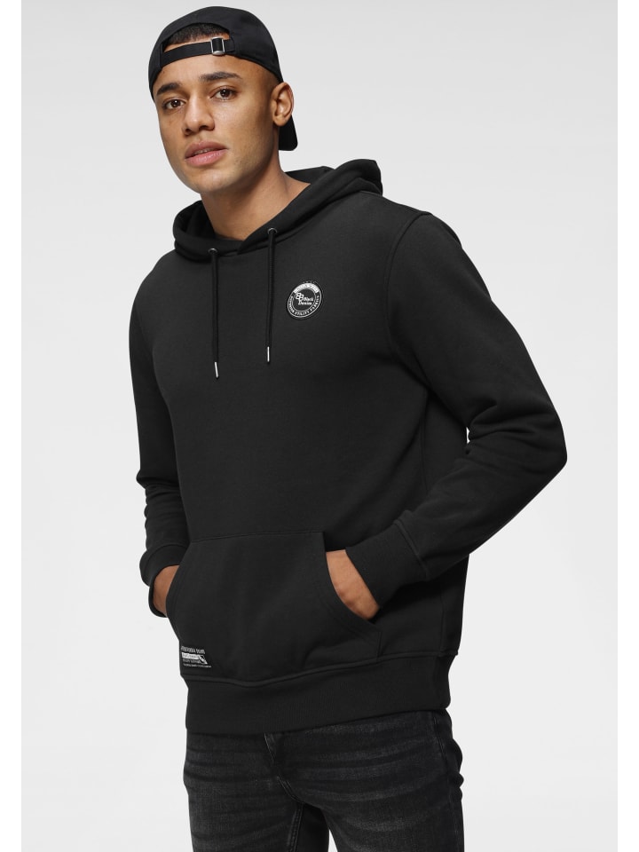 Простая мужская толстовка с капюшоном от Bruno Banani с принтом. Приталенный крой и длинные рукава. Украшена стильными нашивками. Ткань толстовки с начесом обеспечивает уют и мягкость.