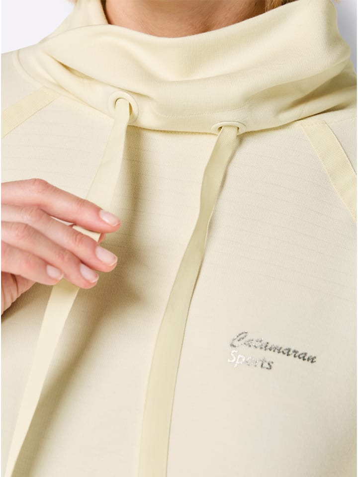 Эта невероятно мягкая и удобная толстовка от Catamaran Sports с логотипом отлично подходит для многослойного ношения и функциональна благодаря быстросохнущим свойствам и высокой воздухопроницаемости. Она имеет свободный воротник-стойку с кулиской и репсовой лентой для регулировки ширины. Репсовая лента также находится на шве реглан. В правом боковом шве расположен потайной карман на молнии. Длинные рукава реглан и нижний край отделаны ребристыми манжетами. Изготовлена из гладкой, сохраняющей форму, высокоэластичной ткани интерлок.