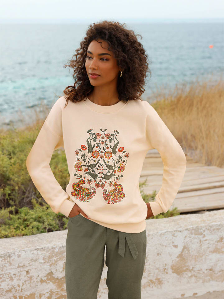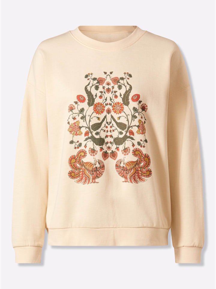 Эффектная толстовка с цветочным принтом и блестящими деталями. Круглый вырез, длинные рукава и эластичные манжеты. Внутренняя сторона с начесом. Сертификация GOTS.