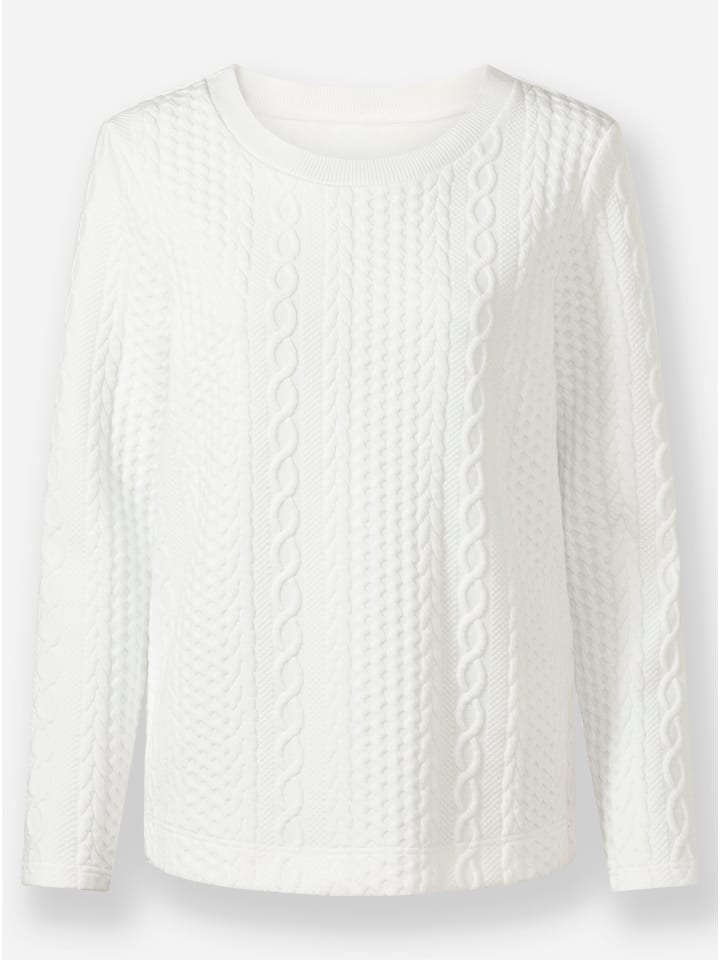Чудесно теплая и мягкая толстовка с изысканным жаккардовым узором. Круглый вырез горловины с тонкой ребристой отделкой, длинные рукава и отстроченный подол с небольшими боковыми разрезами.