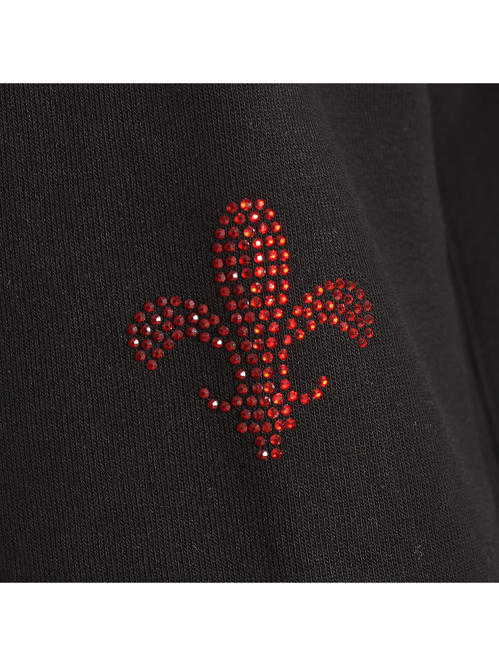 сверкающей красной геральдической лилией из стразов.