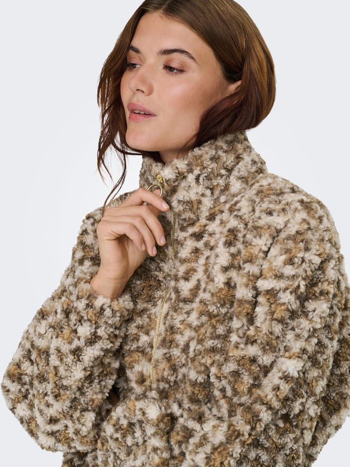 Только толстовка Teddy 'onlXENA', толстовка из ткани Teddy, свободный крой, застежка-молния, воротник-стойка, принт по всей поверхности