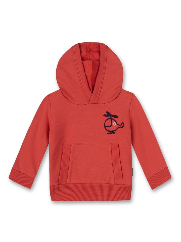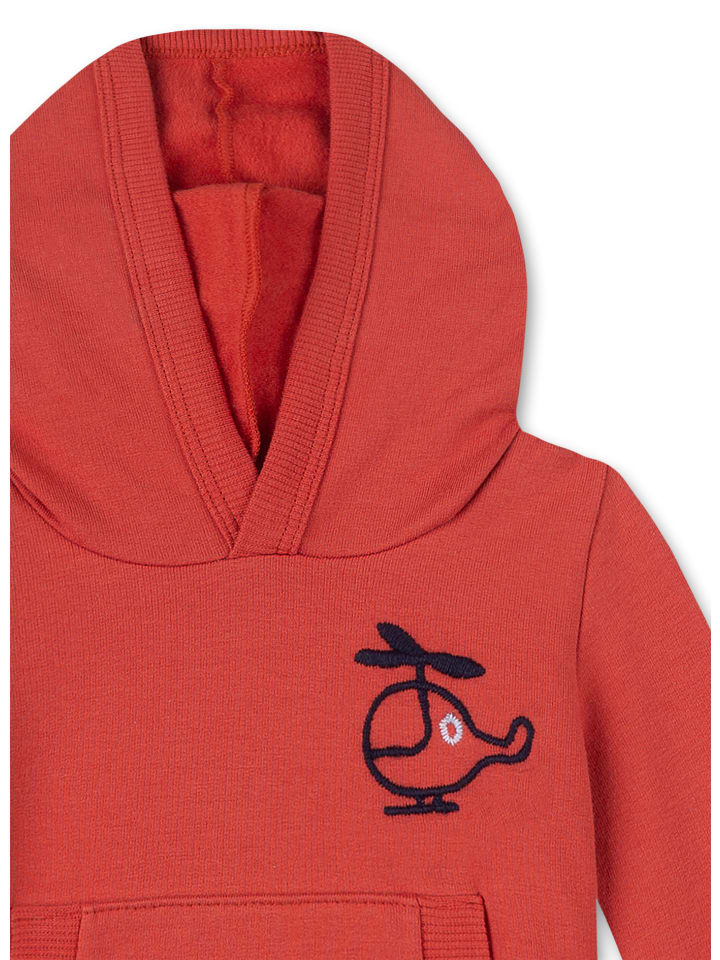 Оранжевая толстовка с капюшоном для мальчиков с небольшим вышитым рисунком на груди от Sanetta Kidswear.
