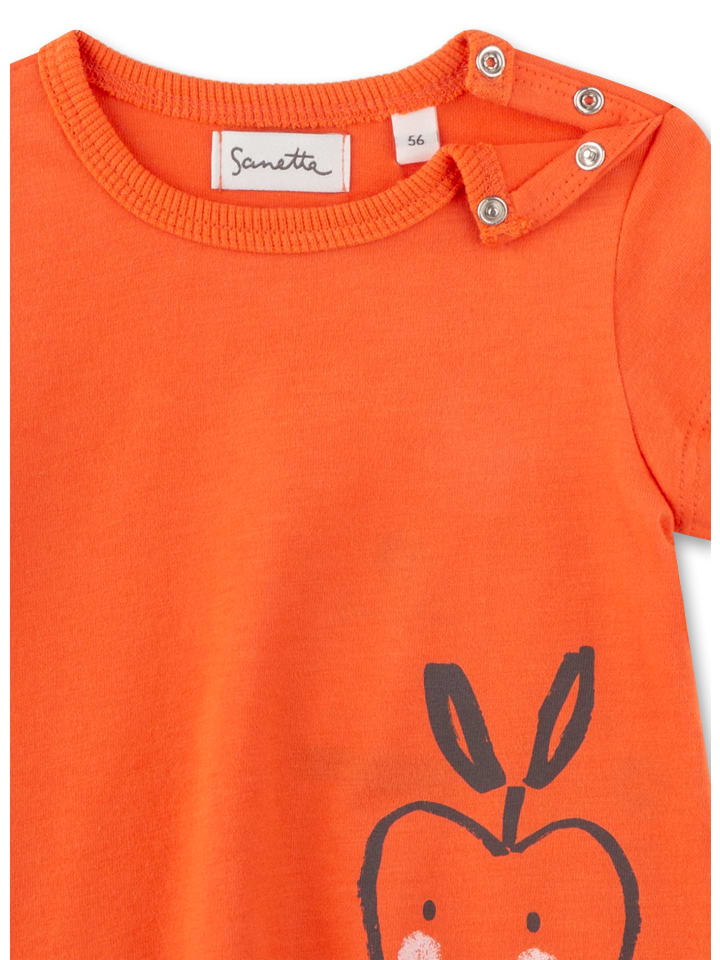 Веселая футболка от Sanetta Pure для маленьких девочек с милым рисунком яблока на левой стороне.
