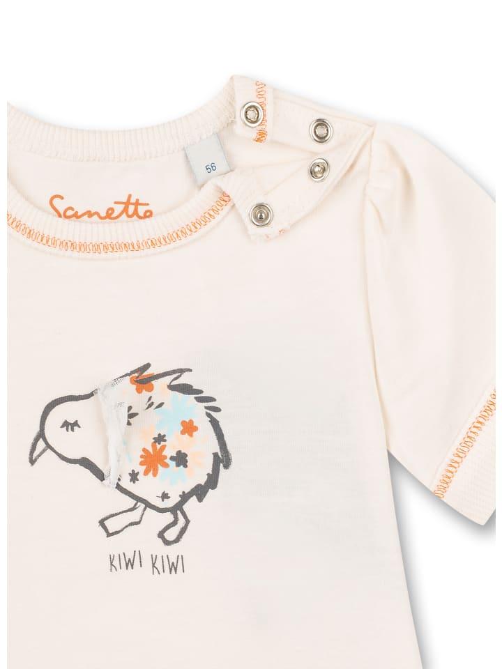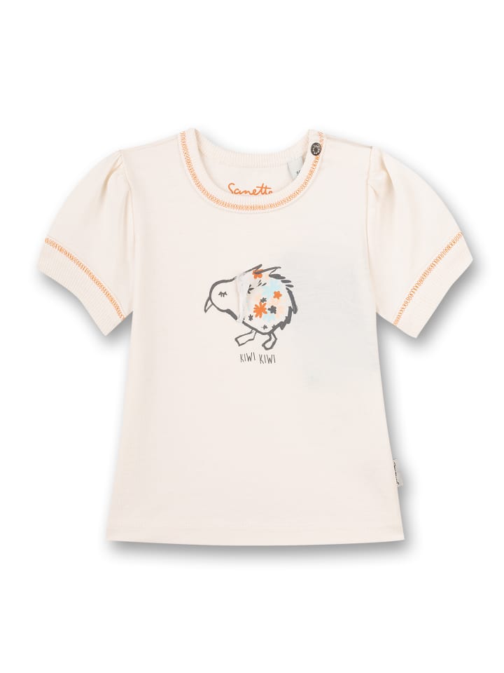Футболка Sanetta Kidswear нежного белого цвета для девочек с декоративным рисунком киви и замысловатыми деталями из тюля.