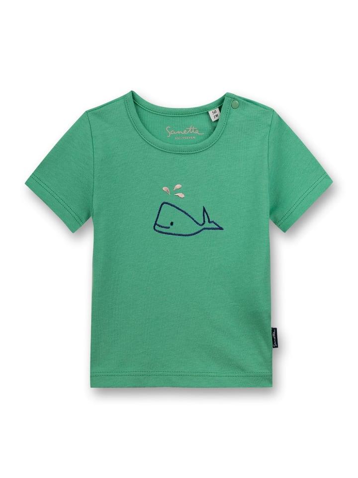Базовая футболка от Sanetta Fiftyseven для мальчиков в весеннем зеленом цвете с высококачественной вышивкой на груди.
