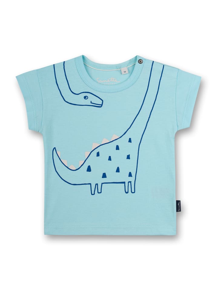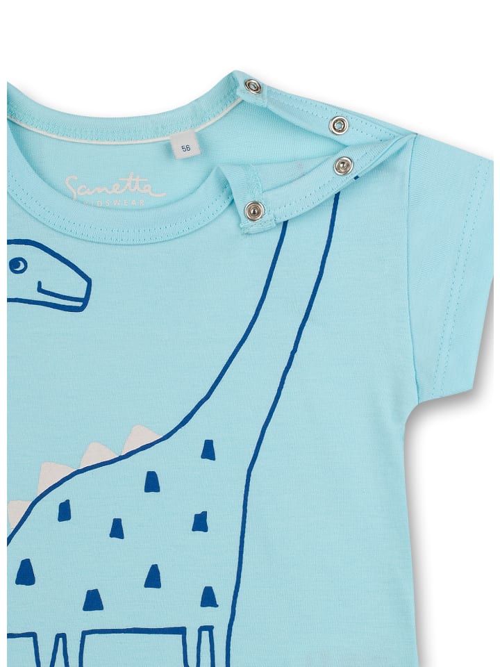 Светло-голубая футболка с забавным принтом динозавра от Sanetta Kidswear для мальчиков.