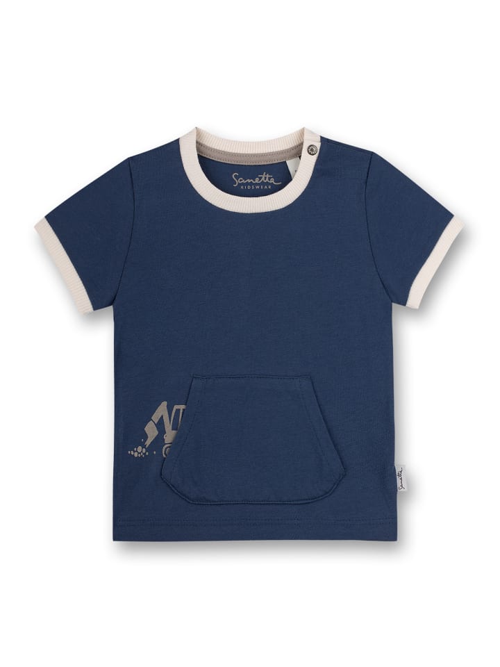 Темно-синяя футболка из органического хлопка для маленьких мальчиков с милым карманом-кенгуру и рисунком маленького экскаватора.