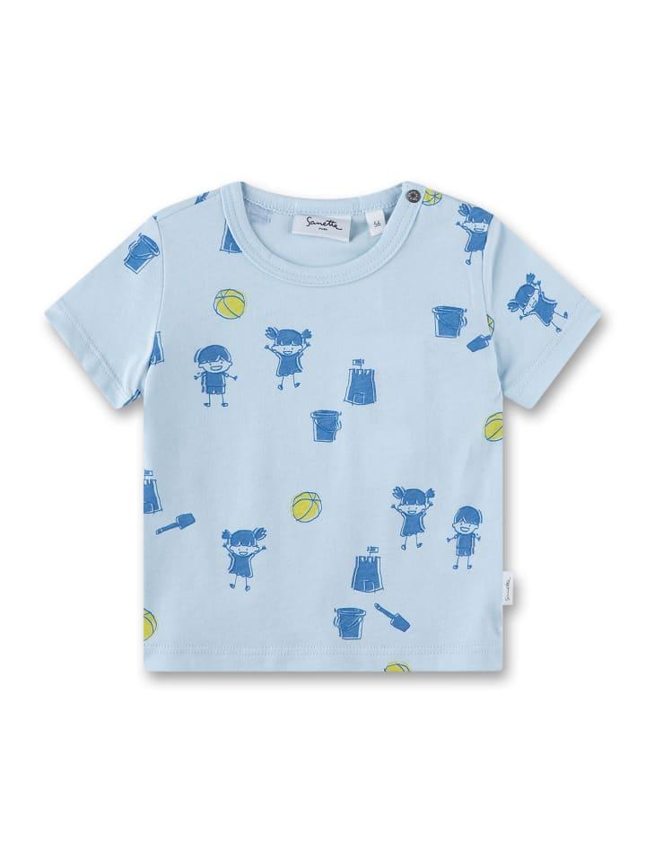 Высококачественная футболка для мальчиков светло-голубого цвета с веселым пляжным мотивом по всей поверхности от Sanetta Pure.