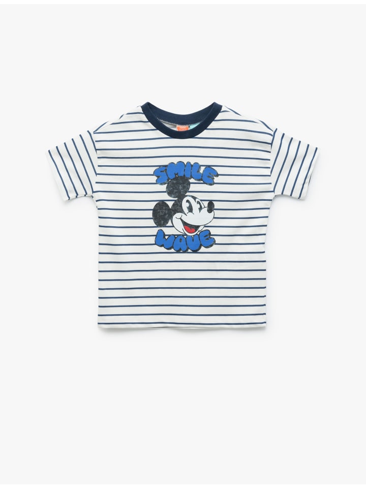 Эта футболка сочетает в себе милый дизайн и комфорт. Круглый вырез горловины и короткие рукава создают непринужденный образ, а изображение Микки Мауса добавляет игривости. Мягкая хлопковая ткань идеально подходит для повседневной носки и обеспечивает комфорт в течение всего дня.