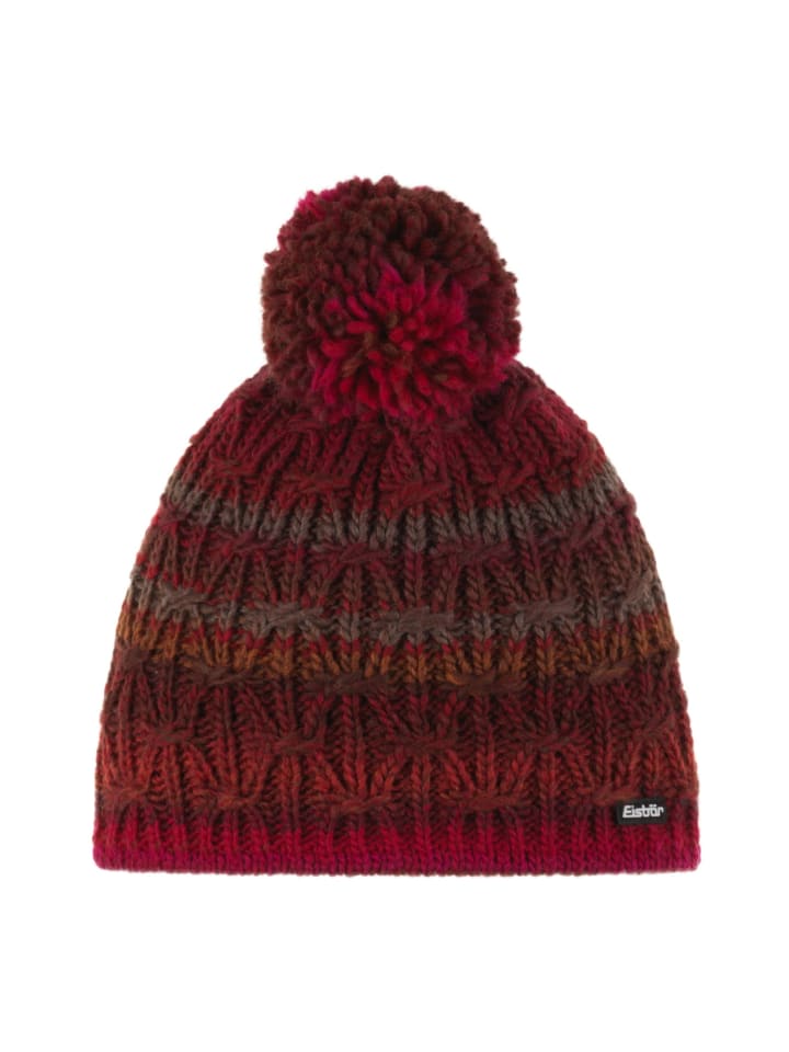 Шапка толстой вязки от Eisbär из разноцветной (окрашенной в массе) пряжи.