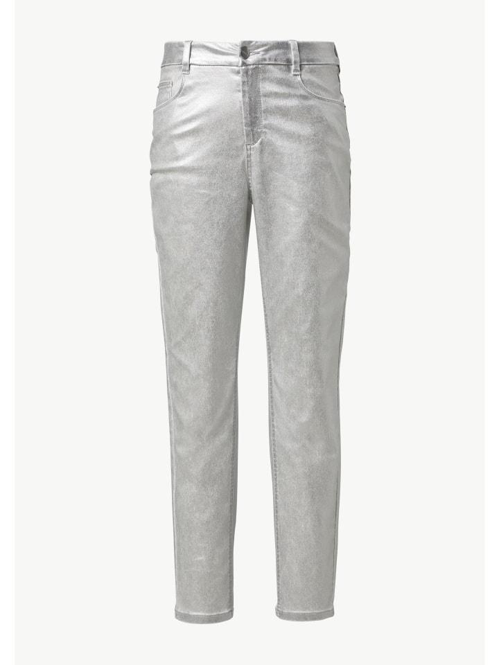 Узкие брюки 7/8 с элегантным серебристым покрытием, придающим им нотку гламура. Хлопковая смесь обеспечивает комфорт, а облегающий крой подчеркивает фигуру. Пять карманов и застежка на пуговицы - практичные детали. Эти брюки со средней посадкой можно носить как в повседневной жизни, так и в элегантной обстановке - универсальный и незаменимый предмет гардероба.