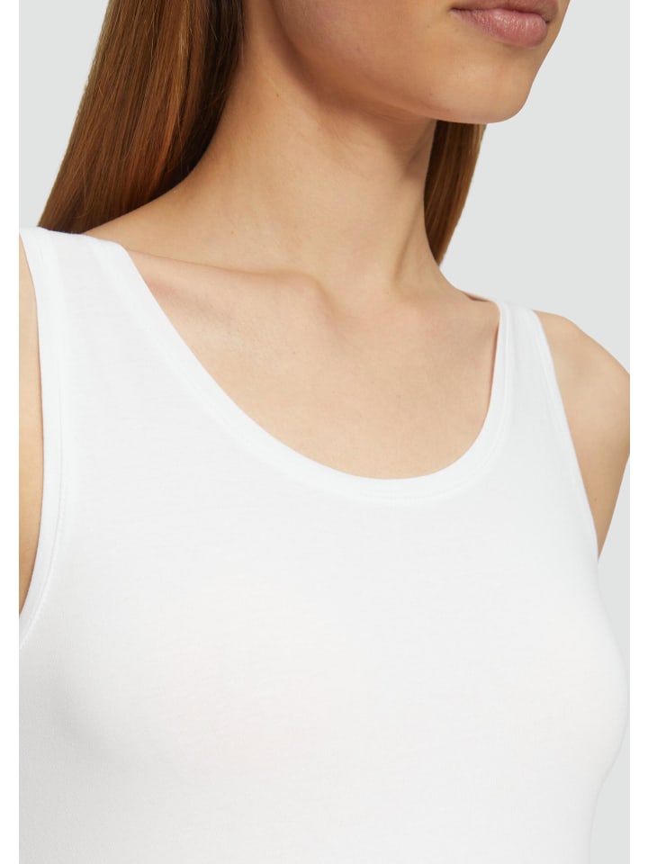 Эта облегающая майка из эластичного хлопкового трикотажа станет вашим надежным спутником в создании непринужденных повседневных образов. Благодаря широким бретелям и классическому круглому вырезу, она впечатляет своим вневременным дизайном и удобной облегающей посадкой.