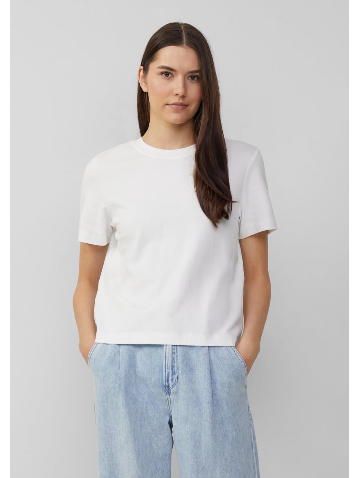 Ваш новый спутник для создания непринужденных повседневных образов: эта укороченная футболка из мягкого трикотажа интерлок с классическим круглым вырезом и свободным стандартным кроем. Неизменная базовая модель для универсальных сочетаний.