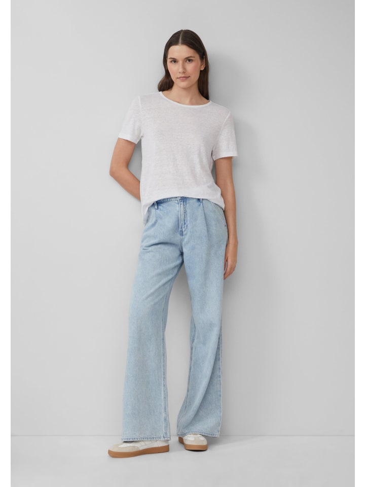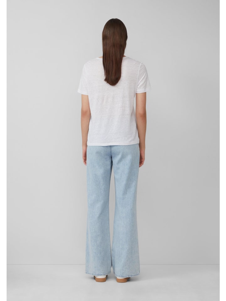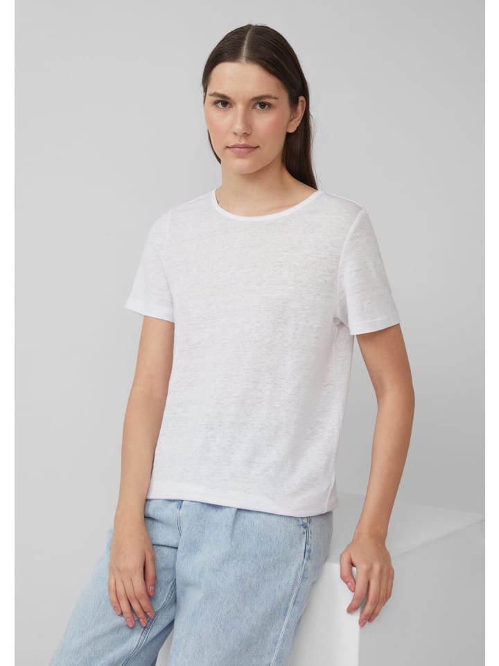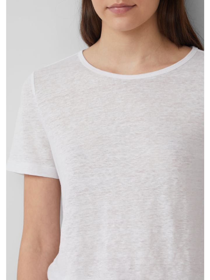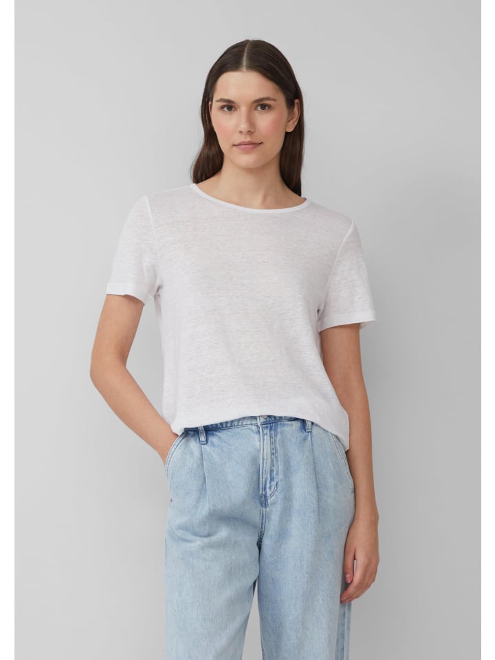 Эта мягкая трикотажная футболка из высококачественного льна станет идеальным дополнением к вашему непринужденному образу. Классический круглый вырез горловины и удобный прямой крой делают ее незаменимой базой на каждый день.