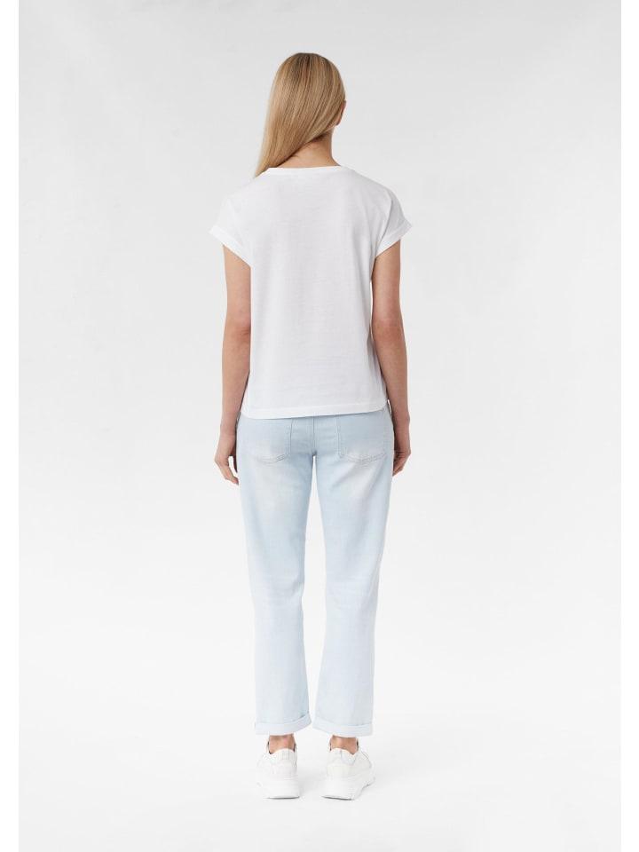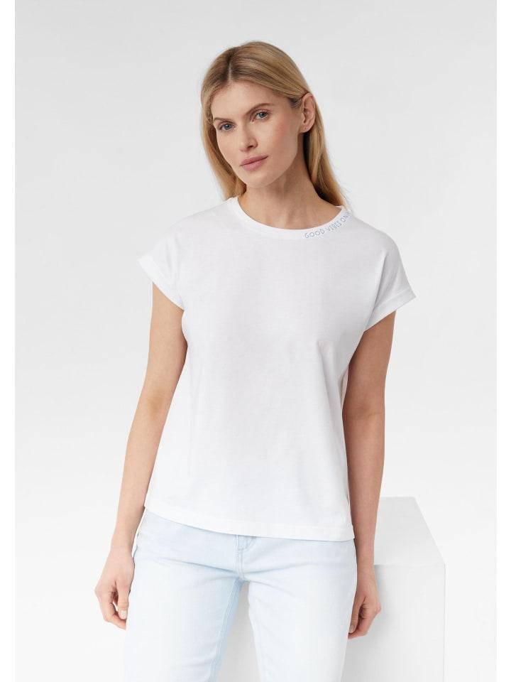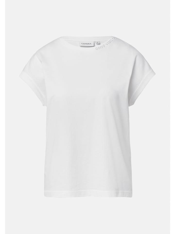 Повседневный комфорт и стильные детали: эта футболка прямого кроя из мягкого хлопкового джерси отличается спущенными плечами и классическим круглым вырезом. Изысканная вышивка добавляет особый шарм этой повседневной вещи. Сочетайте ее с джинсами для создания непринужденного повседневного образа или с блейзером и кюлотами для создания изысканного офисного образа.